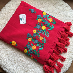 Hand Stiched Kantha Embroidery | Red Mul Cotton Saree