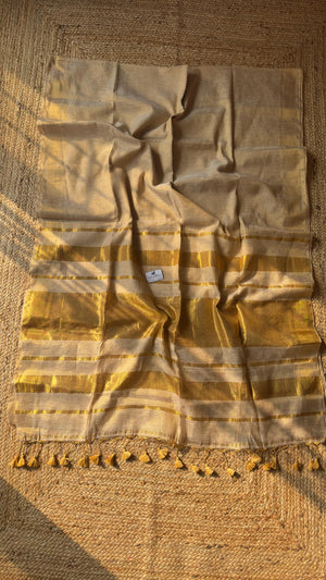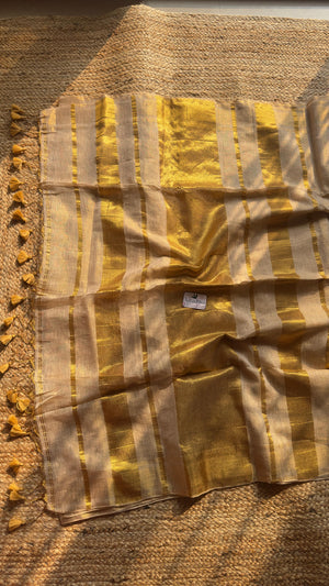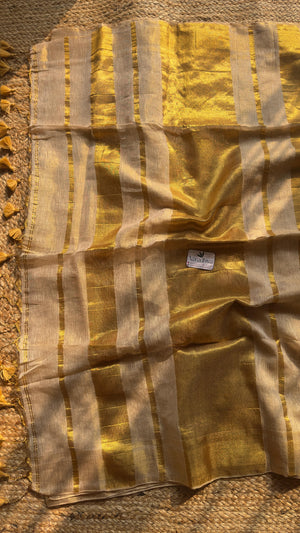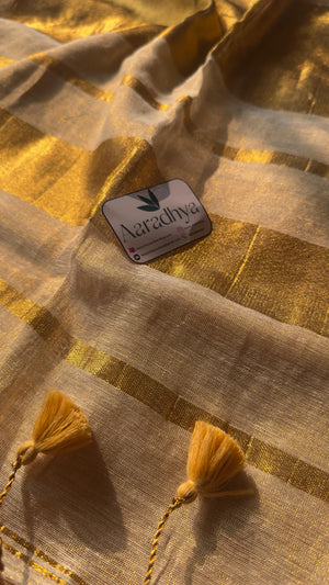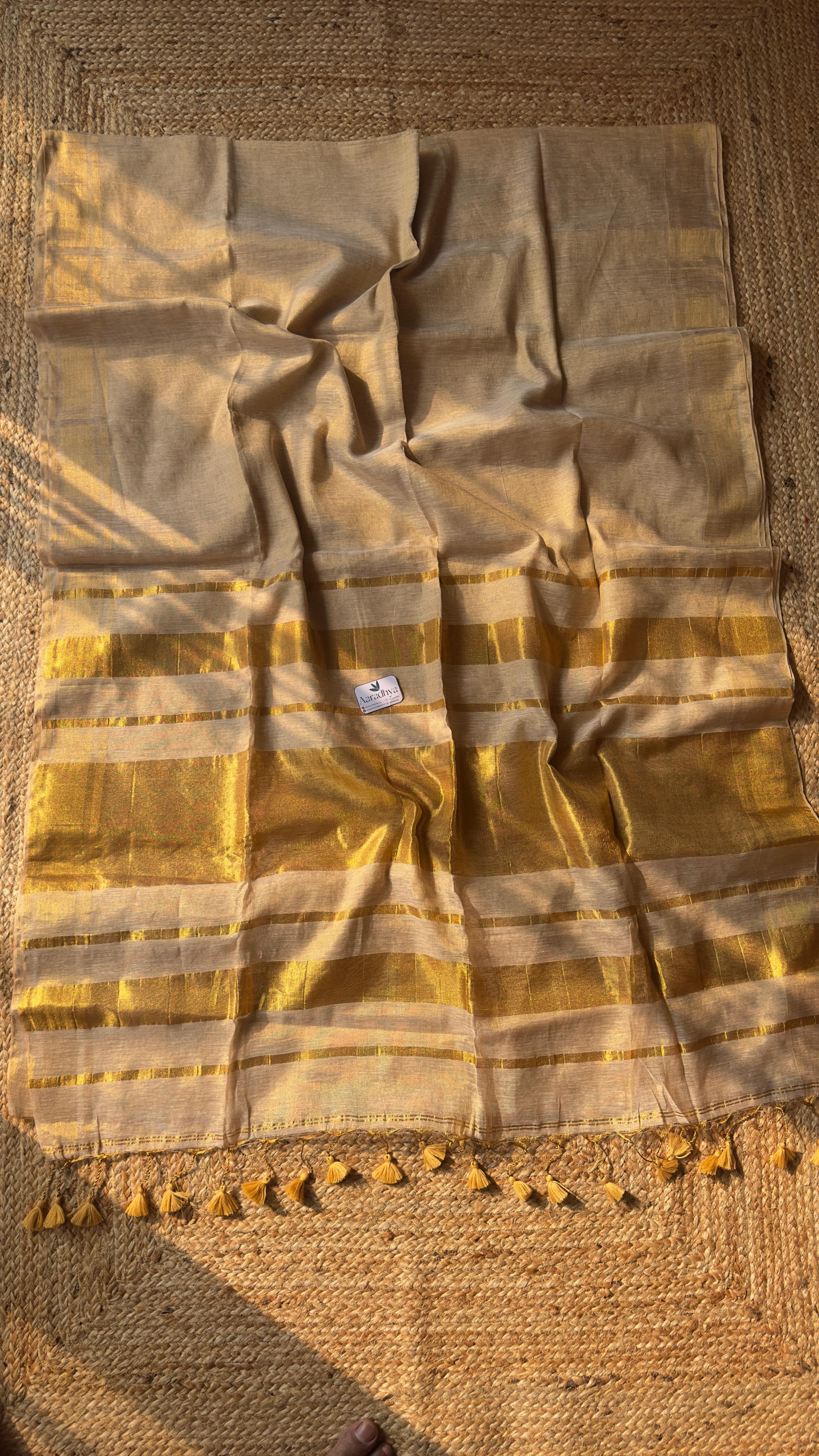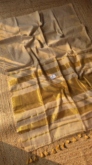Kerala Style Gold Pallu Saree| Golden Linen Tissue Saree
