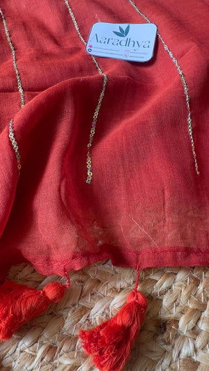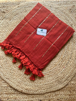 Sequence Work | Rust Orange Mul Cotton Saree